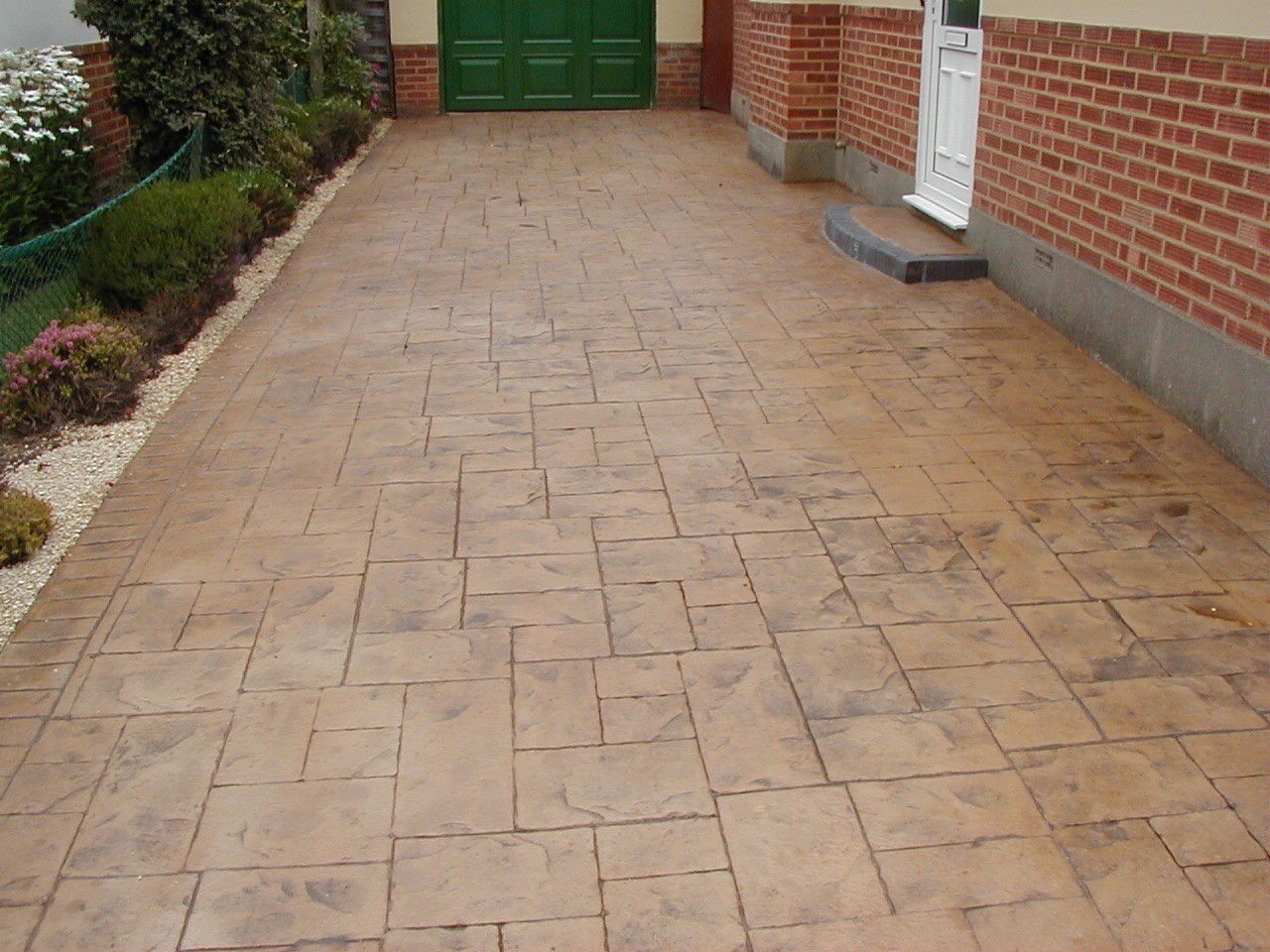 Patterned imprinted concrete is a revolutionary skilled technique that our driveway specialists provide across Norwich & Norfolk. It incorporates colours and patterns to freshly poured concrete on driveways, paths and patios. This re-creates the look of authentic materials such as stone, slate and timber. Our process avoids the associated high costs of these natural products.